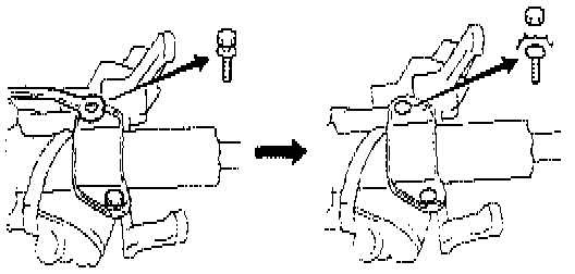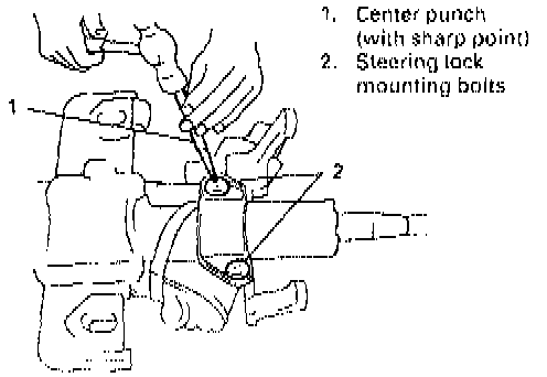 4. Using center punch as shown, loosen and remove steering lock mounting bolts.