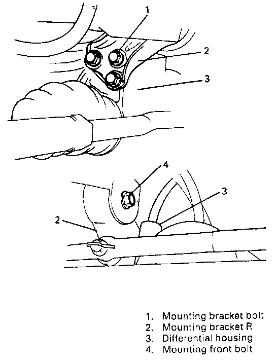2. Separate mounting bracket R from differential housing by removing bolts from its lower part.