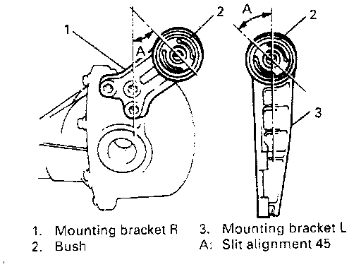 6. Position slit in each bush as shown when press-fitting it.