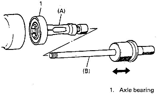4. Remove bearing, using special tools (A) and (B).