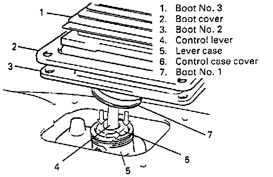 4. With gear shift control case cover pushed down with fingers, turn it to counter clockwise and take out shift control lever.