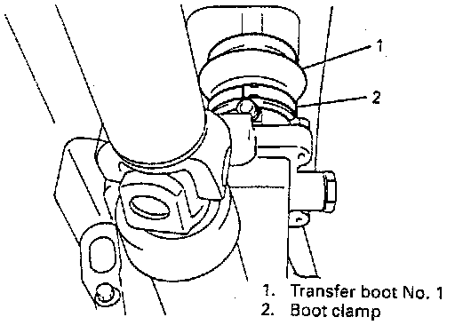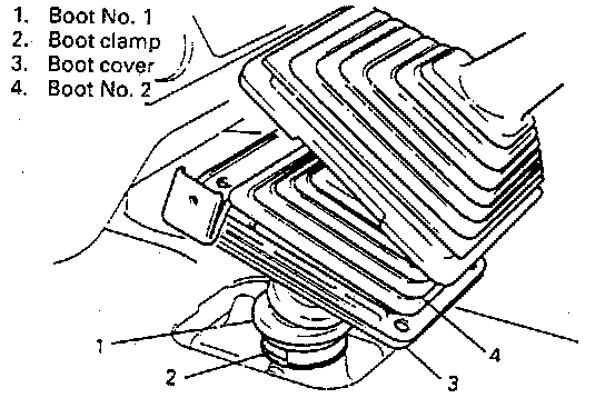 3. Remove boot clamp and then remove boot No. 1 from transmission shift lever case.