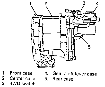 2. Remove 5 bolts and then remove gear shift lever case.
