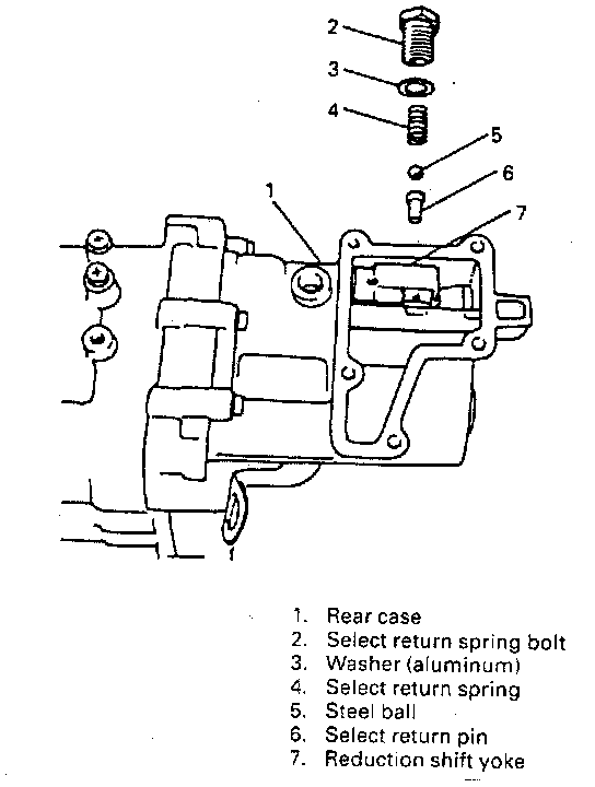 3. After removing bolt of select return system, take out spring, steel ball and pin.
