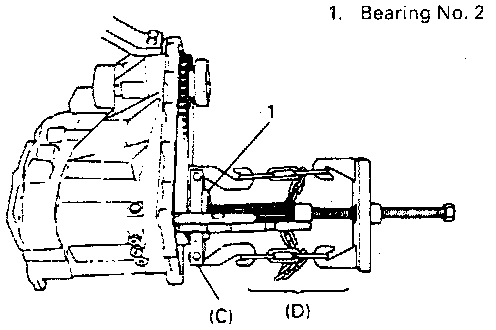 7. Remove circlip for bearing and pull out bearing No. 2 by combination of special tools.
