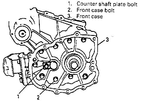 10. Remove counter shaft plate bolt from front case, and counter shaft plate will come off.