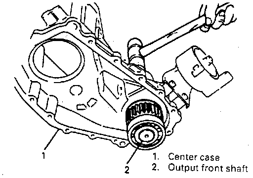 22. Using plastic hammer, drive out output front shaft together with bearings.