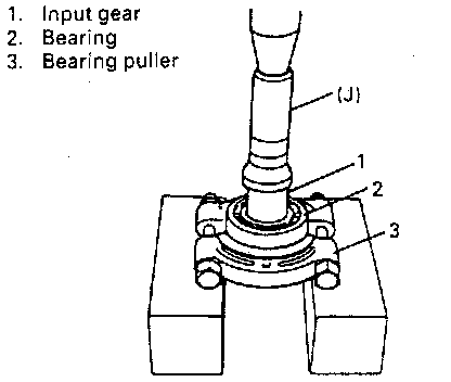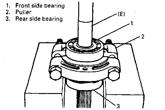 23. Take off bearings from shaft by using press and puller. Removal of front side bearing requires special tool additionally as shown.