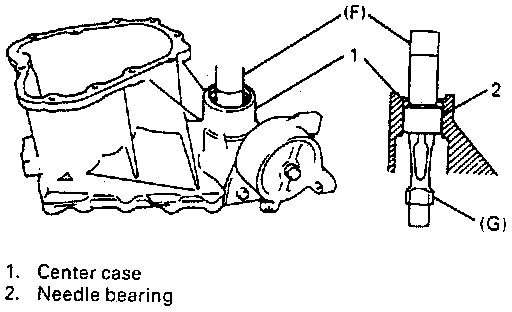 24. To remove needle bearing from center case, combine special tools as shown in figure and press them.