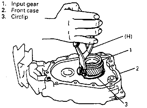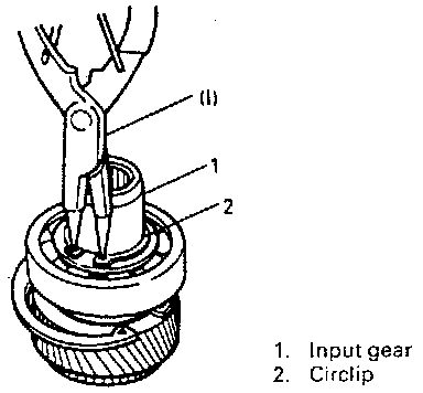 28. Remove circlip of input gear by using special tool.