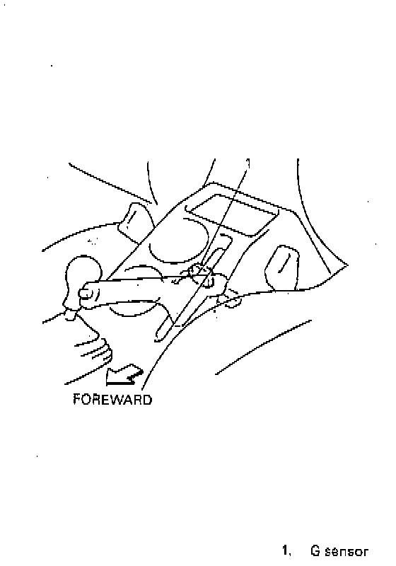 The G sensor is located inside the rear console, right rear of the parking brake handle assembly