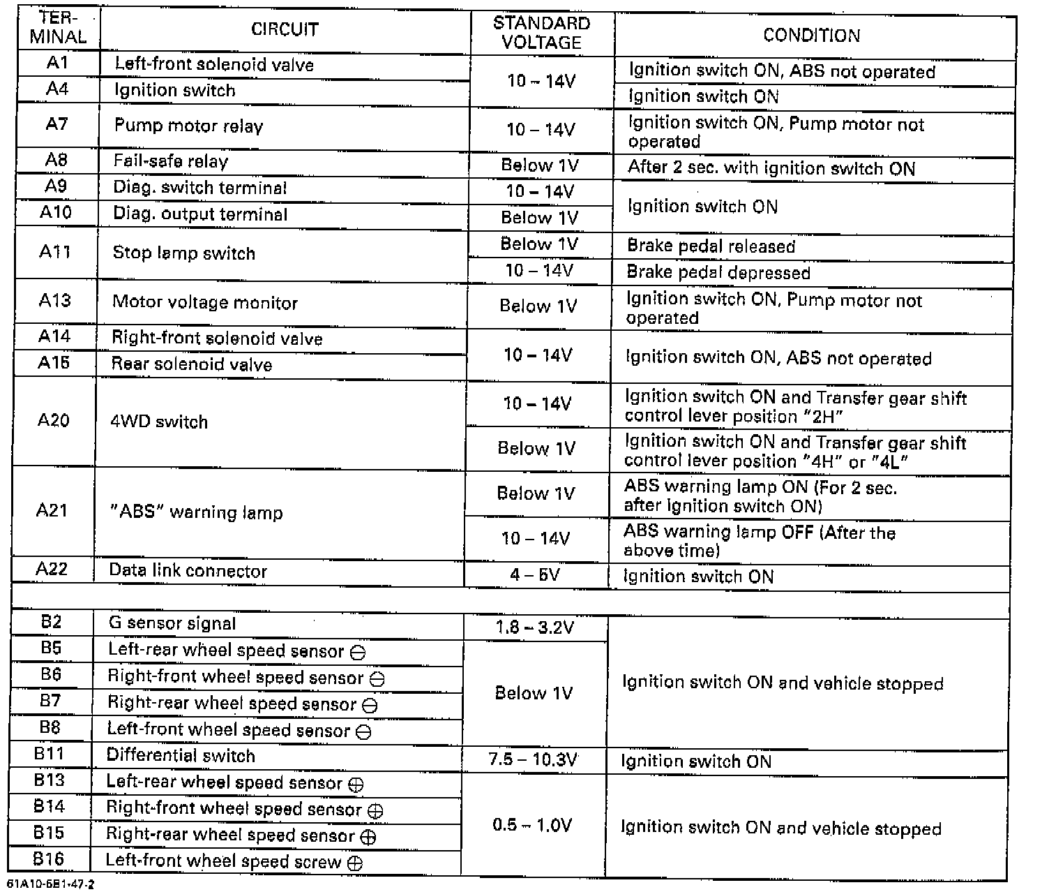 NOTE: As each terminal voltage is affected by the battery voltage, confirm that it is 11 V or more when ignition switch is ON.