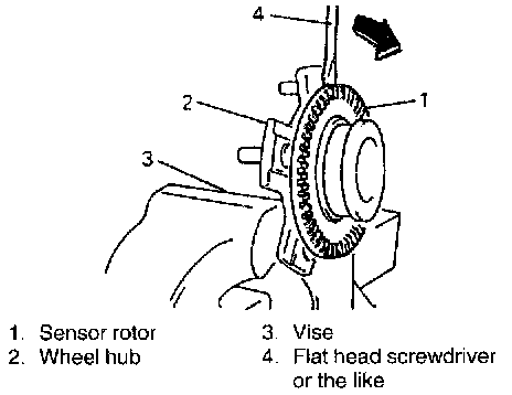 Remove sensor rotor from wheel hub as shown.