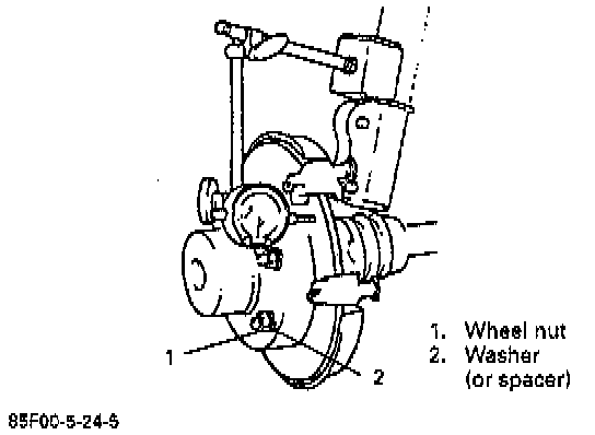 Use wheel nuts and suitable plain washers to hold the disc securely against the hub, then mount a dial indicator as shown and measure the runout at 25 mm (0.98 inch) from the outer edge of the disc.