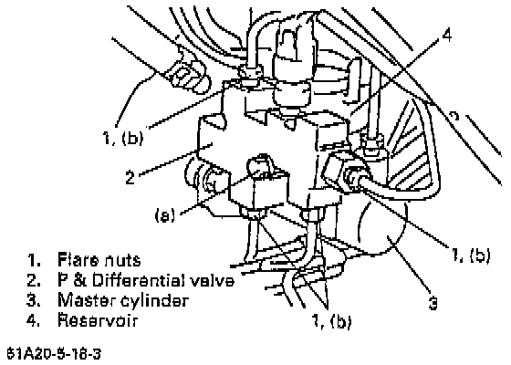 1. Install the P & D valve, refer to the illustration and tighten fastener (a) to 10 Nm (7.5 ft. lbs.) and the flare nuts (b) to 16 Nm (12.0 ft. lbs.)