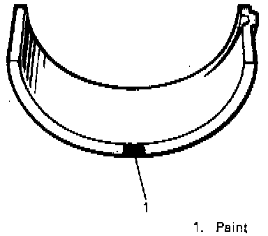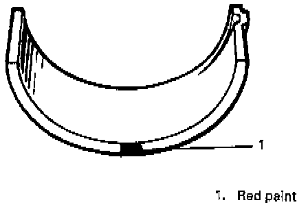 To distinguish undersize bearing, it is painted red at the position as indicated in figure. Undersize bearing thickness is 2.124 - 2.128 mm (0.0836 - 0.0337 inch) at the center of bearing.