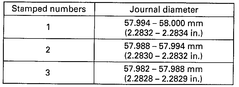 Diameter of journal: 57.982 - 58.000 mm (2.2828 - 2.2834 inch)