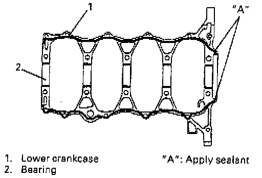 5. Apply sealant "A" to lower crankcase mating surface area as shown in figure.
