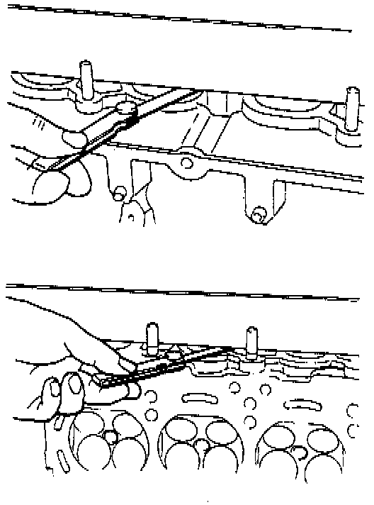 NOTE: Check seating faces of cylinder head for manifolds, using a straightedge and thickness gauge, in order to determine whether these faces should be corrected or cylinder head replaced.