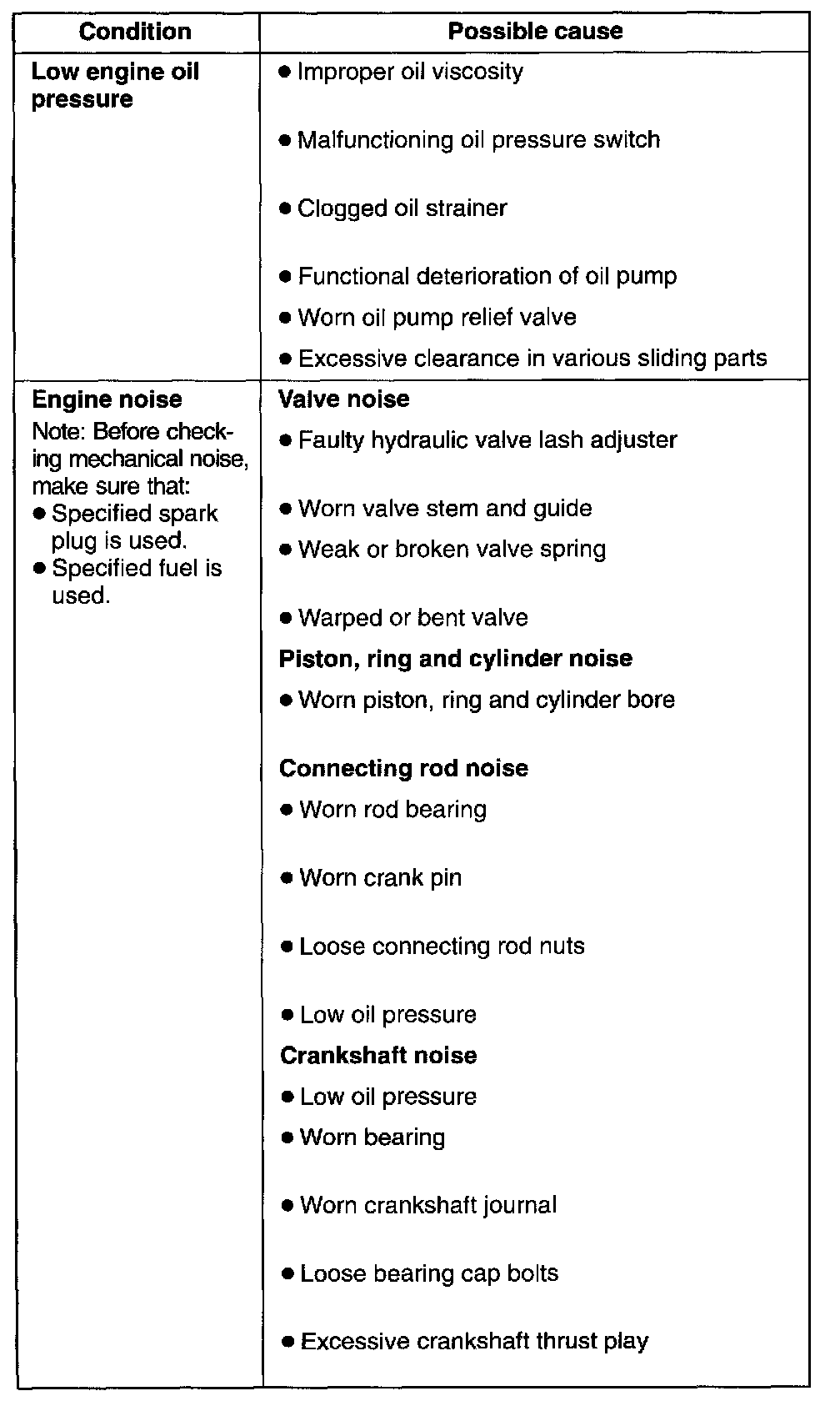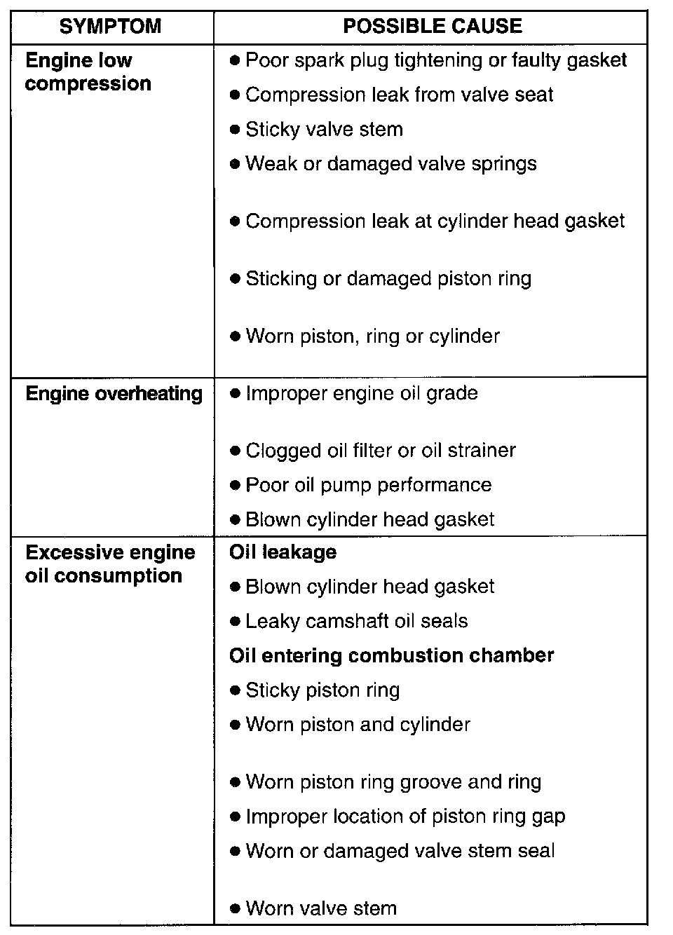 ENGINE MECHANICAL DIAGNOSIS TABLE
