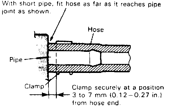 - Fuel or fuel vapor hose connection varies with each type of pipe. When reconnecting fuel or fuel vapor hose, be sure to connect and clamp each hose correctly referring to figure "Hose Connection".