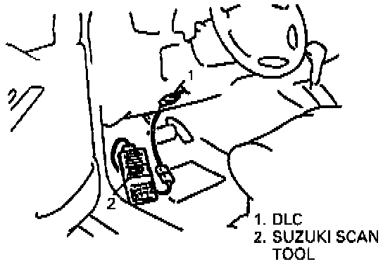 1) Connect SUZUKI scan tool to DLC with ignition switch OFF.