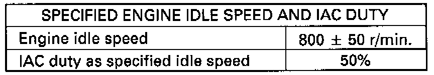 After above items are all confirmed, check idle speed and IAC duty as follows.