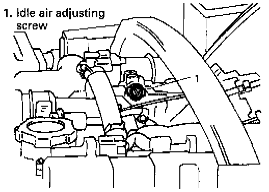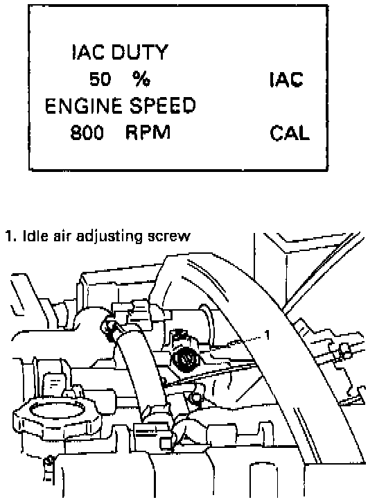 If duty and/or idle speed is out of specifications, adjust it by turning idle air adjusting screw.