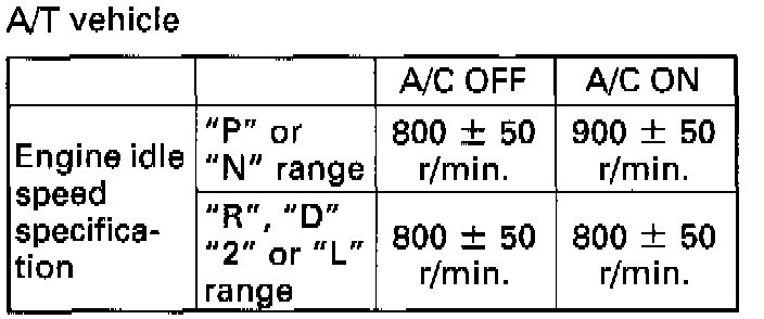 4) Check that specified engine idle speed is obtained with A/C ON if vehicle is equipped with A/C.