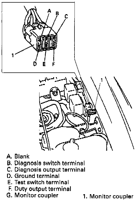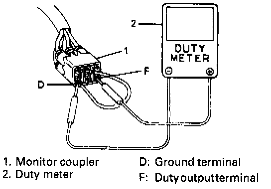 3) Stop engine and connect duty meter between duty output terminal and ground terminal of monitor coupler.