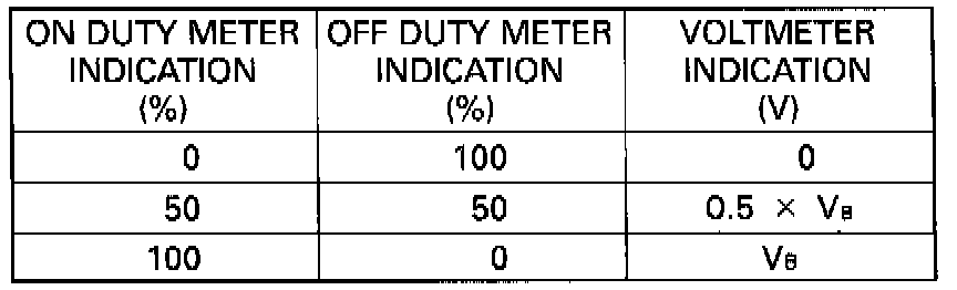 NOTE: IAC duty can be checked by using analog type voltmeter. IAC duty to voltage relation is as follows.