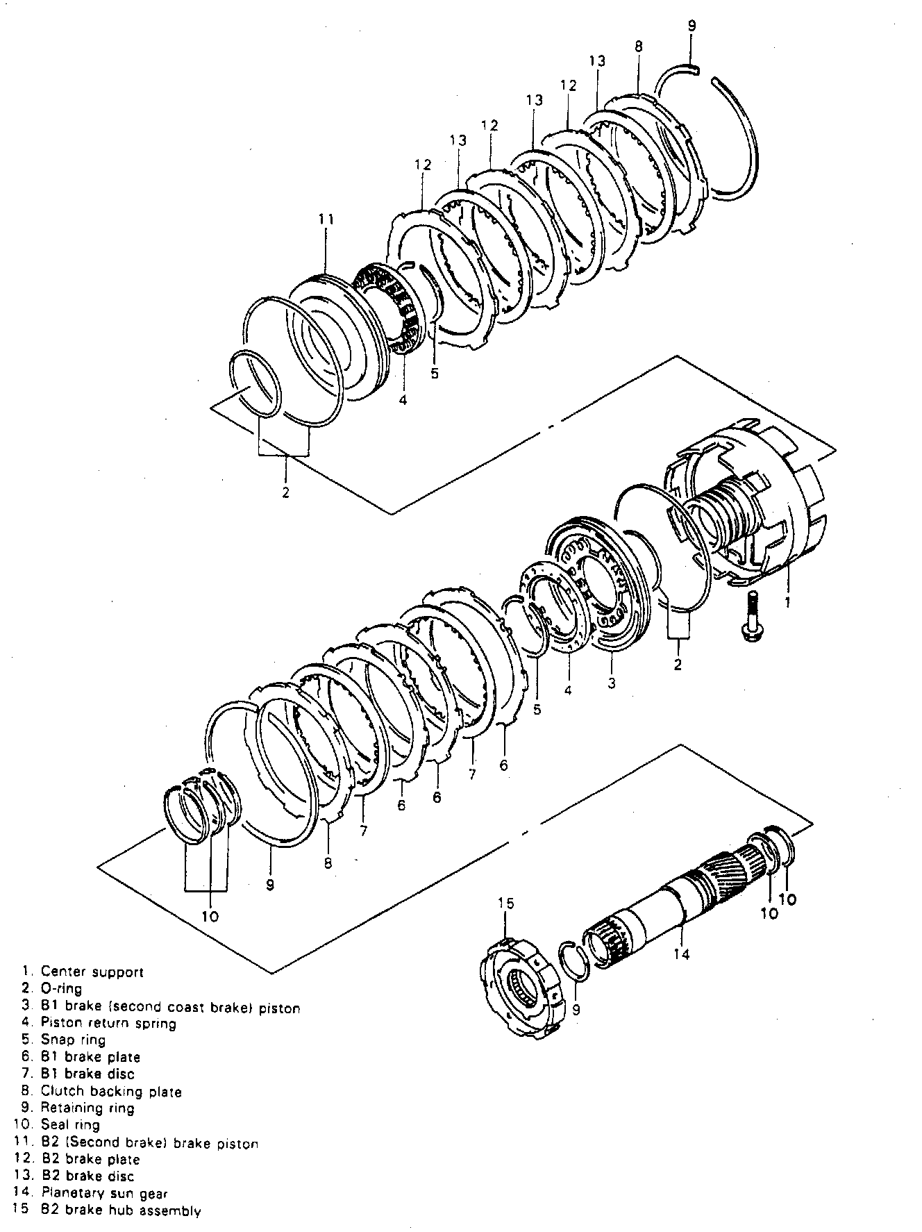5. After removing clutch backing plate, remove B1 brake plates and B1 brake discs.