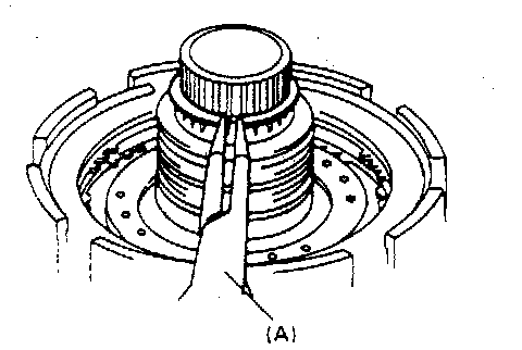 8. Blow air into fluid hole at the extreme left and remove B1 brake piston as shown in figure. Then remove piston inner O-ring and piston outer O-ring from B1 brake piston.
