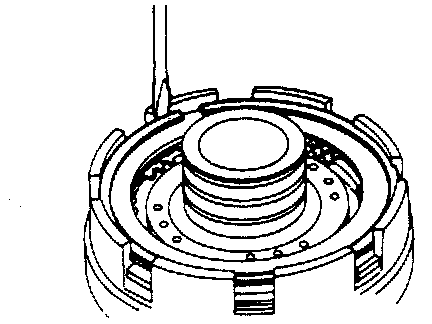 6. Using special tool and hydraulic press, compress piston return spring and remove snap ring.