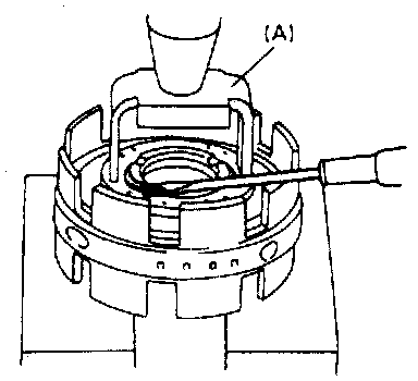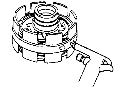 CAUTION: Be careful when applying pressure, for overpressure will cause plate section of piston return spring to deform.