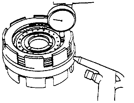 3. Apply 4-8 kg/cm2 air pressure into fluid hole at the extreme left and measure movement of B1 brake (Second coast brake) piston.