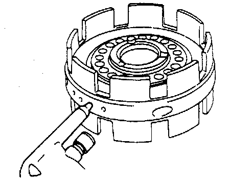 - Install clutch backing plate with its chamfered side facing brake disc.