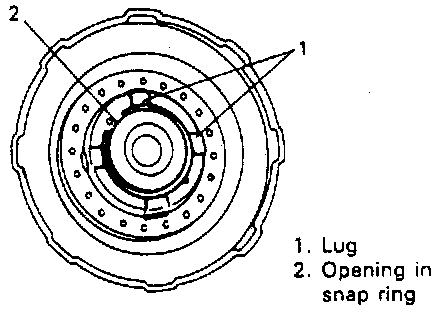 - When installing snap ring, do not align lug of retainer with opening in snap ring.