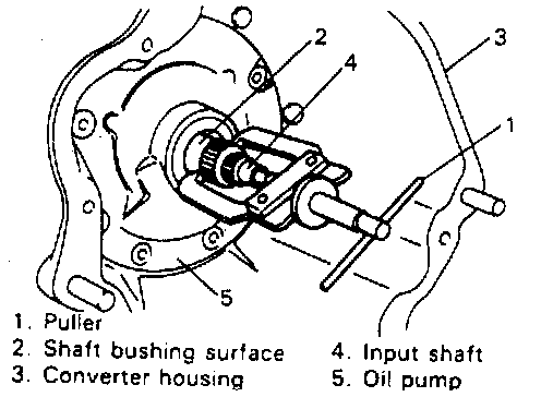 CAUTION: Remove torque converter as straight as possible. Leaning it may cause damage to the oil seal lip.
