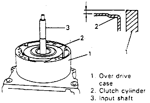11. Check dimensions of overdrive (O/D) case surface and clutch cylinder surface for reassembly.
