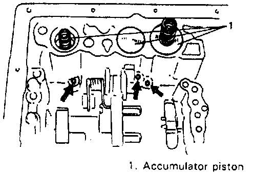 21. Remove accumulator pistons by blowing air into holes indicated in figure.
