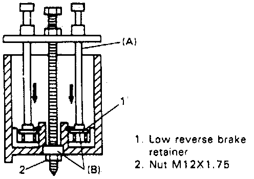 32. Remove rear action sleeve and reverse brake piston by blowing air into hole (b) with (a) hole closed.