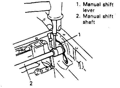 34. Using a punch, drive out manual shift lever pin, pull out manual shift shaft and remove manual shift lever. Then remove sleeve cover from manual shift lever.