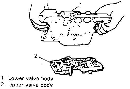 4. Separate upper valve body and lower valve body while pressing separator plate and valve body gasket against lower valve body to prevent balls, spring and others from coming out of valve body.