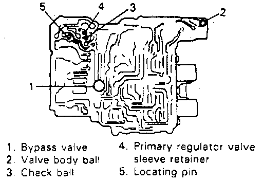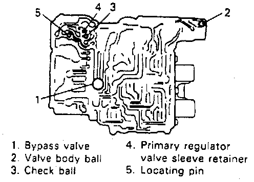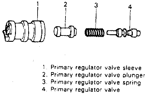 9. Pressing primary regulator valve sleeve with finger and using magnet, remove primary regulator valve sleeve retainer and then remove primary regulator valve sleeve, primary regulator valve plunger, primary regulator valve spring and primary regulator valve.