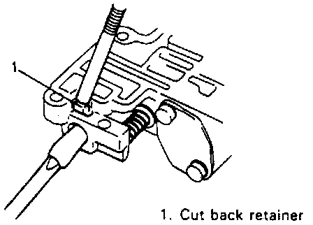 2. Using screwdriver with vinyl tape or the like wound around its tip, hold cut back valve plug and remove cut back retainer with magnet. Then remove cut back plug, cut back valve and cut back valve spring.