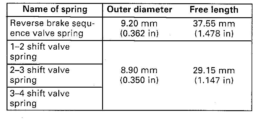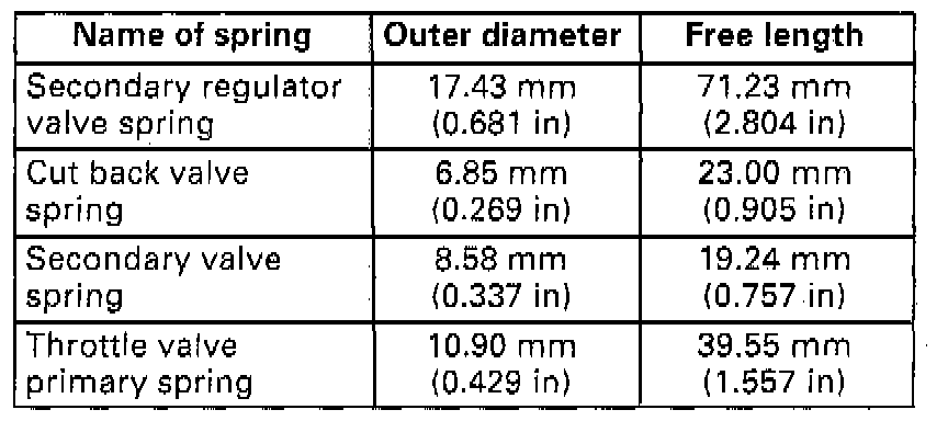 - Coil outer diameter and free length of each valve sprig should be as listed below. Be sure to use each one of correct size.
