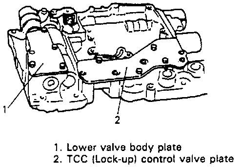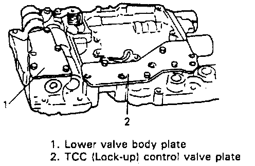- Tighten lower valve body plate, TCC (lock-up) control valve plate flange bolt to specified torque.