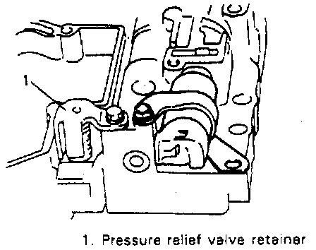 4. With pressure relief valve retainer pressed with finger, remove pressure relief valve bolt and then remove pressure relief valve retainer, pressure relief valve spring and pressure relief valve ball.