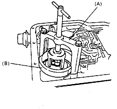CAUTION: When installing piston, do not tap piston from the top. Push it in by turning screw of special tool by left hand while tapping piston on its side with rubber mallet in right hand.
